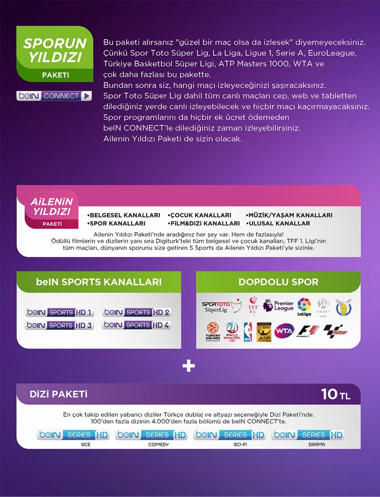 Hem film hem de spordan vazgeçemiyorsanız, hatta "dizi kanallarını da istiyorum" diyorsanız bu paket tam size göre. Digitürk Yıldız Dolu Paketi. YILDIZ DOLU PAKETİ KAMPANYASI